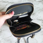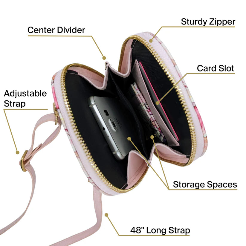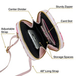 Monarque’s art inspired Frank Lloyd Wright Saguaro Sunrise Crossbody's beauty can only be matched by its versatility. This vegan leather crossbody bag features an exterior front pocket for easy access and a convenient back card slot. A roomy divided interior is large enough for a cell phone, slim wallet, and lip balm. The additional interior card slot offers even more storage.