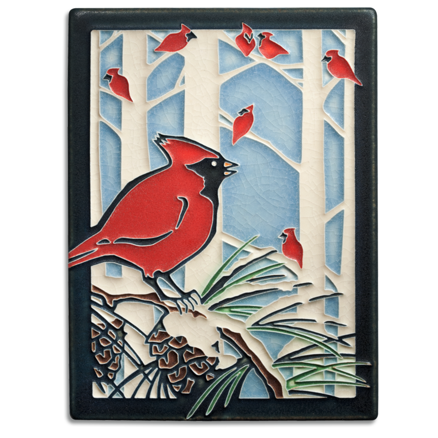"Winter Cardinals" is inspired by a print Yamamoto created to be featured in the PBS Series "Craft in America" for the holiday 2015 season.