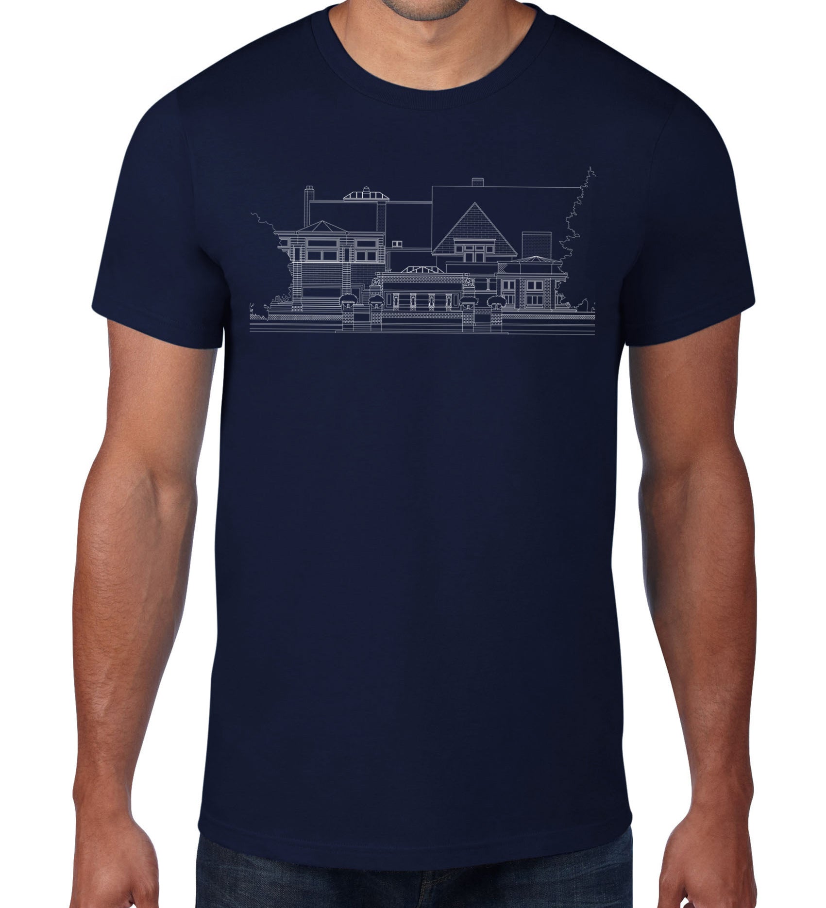 Robie House Architectural Rendering T-Shirt - Navy Blue