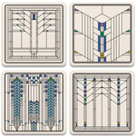 Coasters with four complex art glass patterns from Wright's Ennis House (Los Angeles, California, 1923) make a perfect hostess gift. Of absorbent, porous sandstone, they are superbly functional as well.