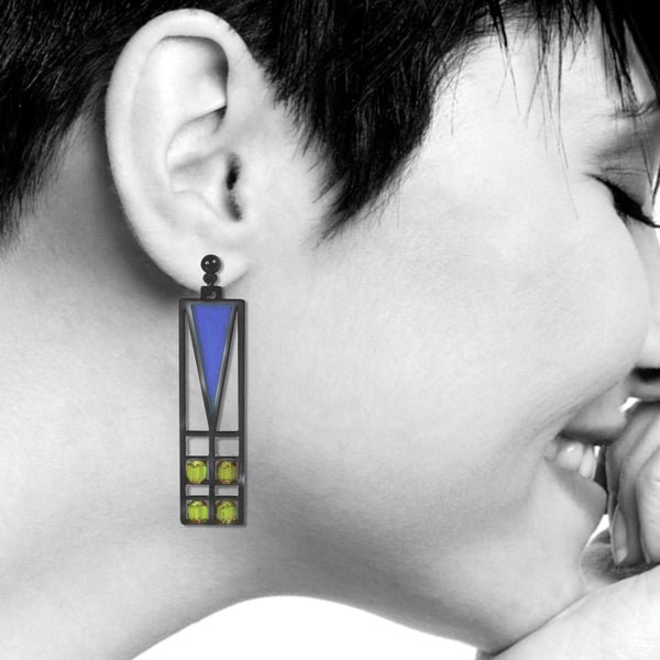 Earrings - Frank Lloyd Wright - Frank Thomas House Light Screen - Blue/Green