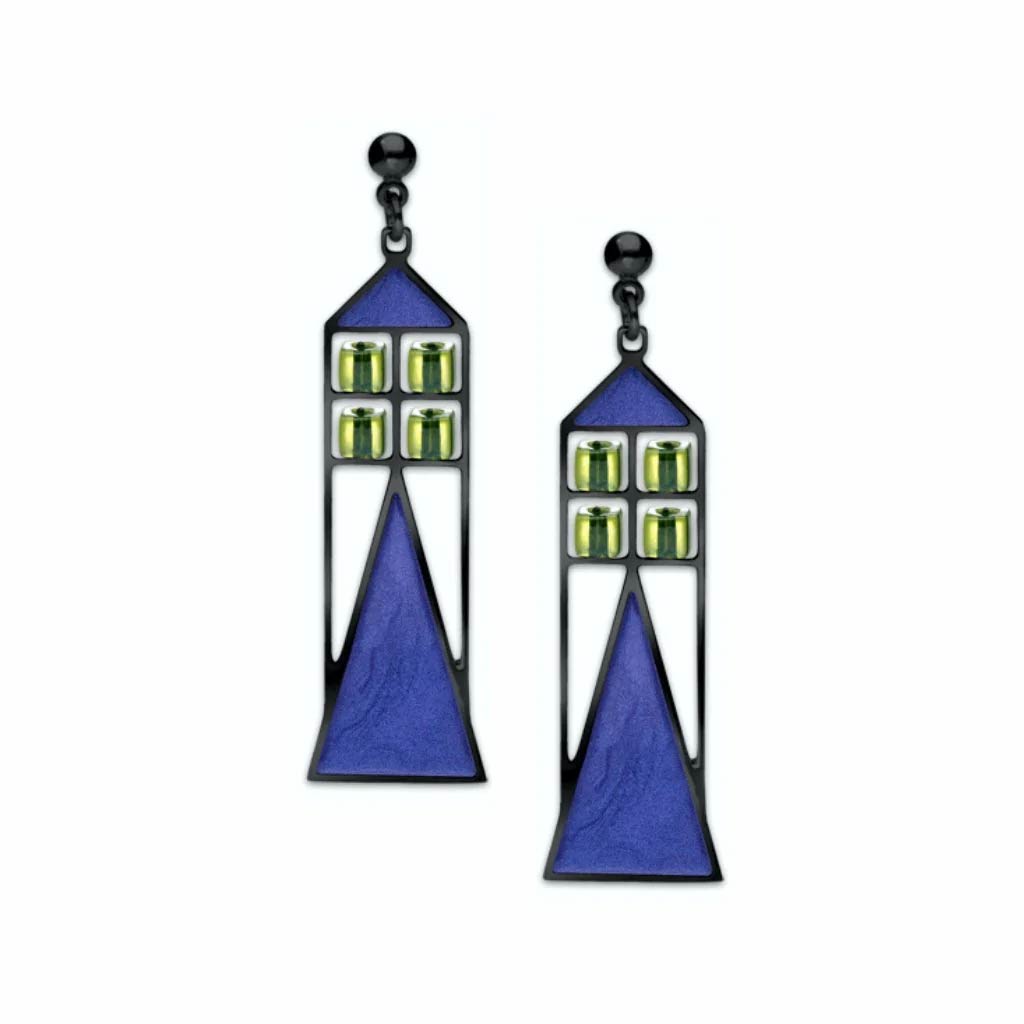 Earrings - Frank Lloyd Wright - Frank Thomas House Light Screen - Blue/Green