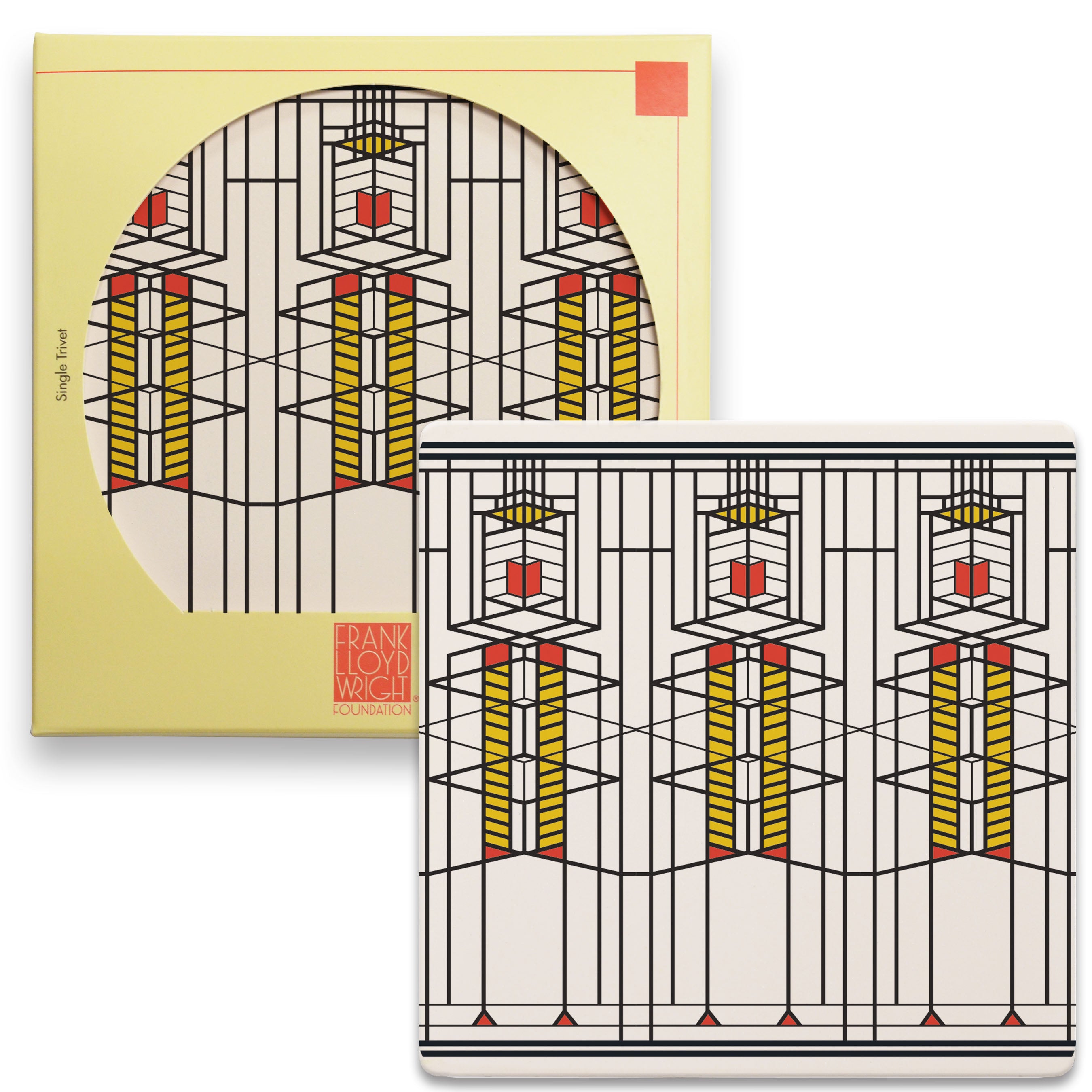 Absorbent sandstone trivet highlighting the intricate art glass windows in Robie House.