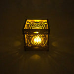Votive holder is made from cherry veneered MDF with 1/4" thick walls. This decorative addition to your home includes a glass votive holder and a flickering battery operated tea light. 4" square.