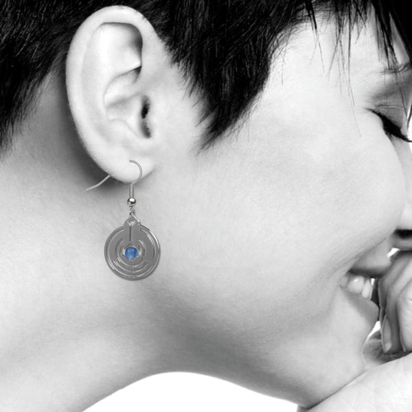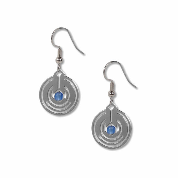Earrings - Babson Window - Pale Green Bead with Twilight Blue Enamel
