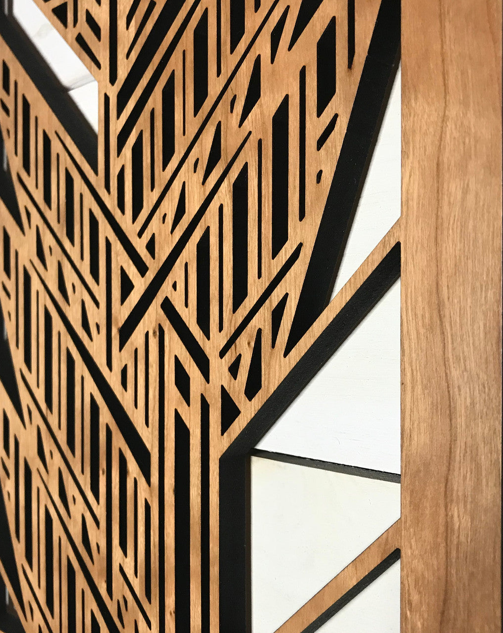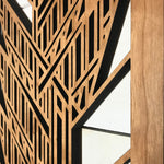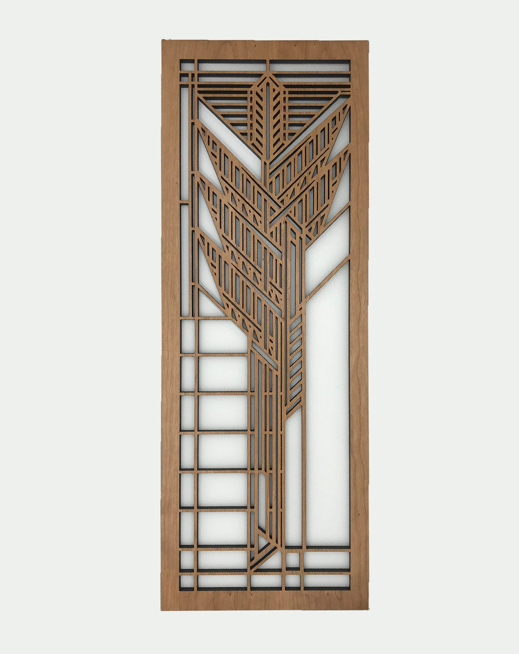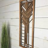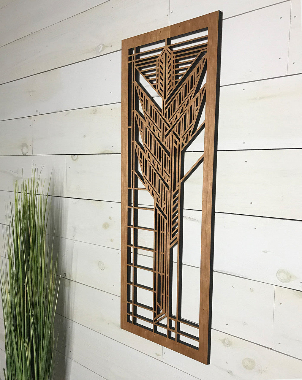 Our medallions and wall elements are made with cherry veneered MDF. This beautiful wall element measures 11-1/2" x 31-1/2" x 1/2". Includes one sawtooth hanger and hardware. All AlaModerna products are made in the USA.