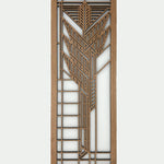 Frank Lloyd Wright created some of his finest and most detailed art glass compositions for the doors, windows, and light fixtures of the Dana-Thomas House. Many of these designs are geometric abstractions of natural elements. Most notable are the butterfly art glass design arching around the entry door and the sumac design used in art glass windows throughout the house.