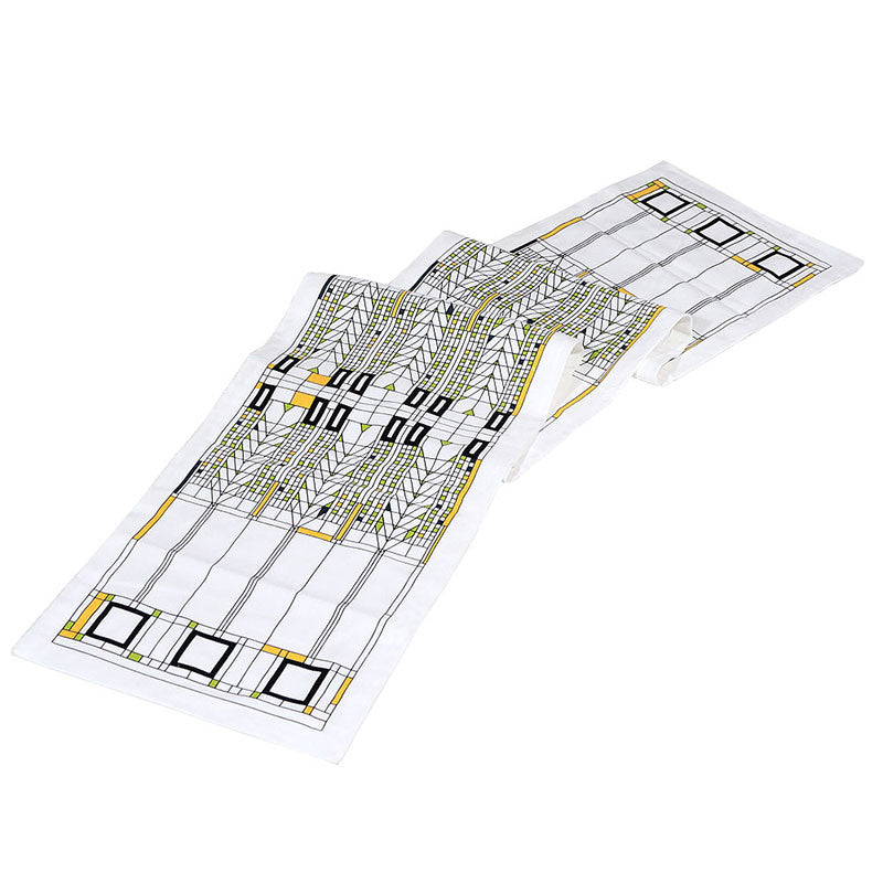 Wright's celebrated Tree of Life window design from the Darwin Martin House. 100% cotton with pigment printed design, 1" mitered hems, machine wash/dry.