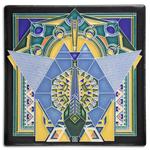 This tile is inspired by the iconic peacock design used in the Hotel rug, furniture and wall tapestry. The peacock theme was recurring throughout the ornamented hotel, also to be found as a carved mural in “Peacock Alley,” the lavish main lobby.