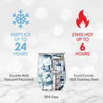 - BPA-free 18/8 stainless steel, double-wall vacuum insulated to keep hot beverages hot up to 6 hours; cold drinks up to 12 hours, keeps ice frozen for up to 1 day