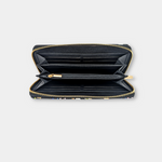 Stay organized with 8 interior card slots, several slip pockets, and a zippered interior compartment. Most phones will easily fit inside, allowing a fashionable carry all. This wallet features a sturdy zipper and convenient removable wrist strap.