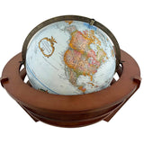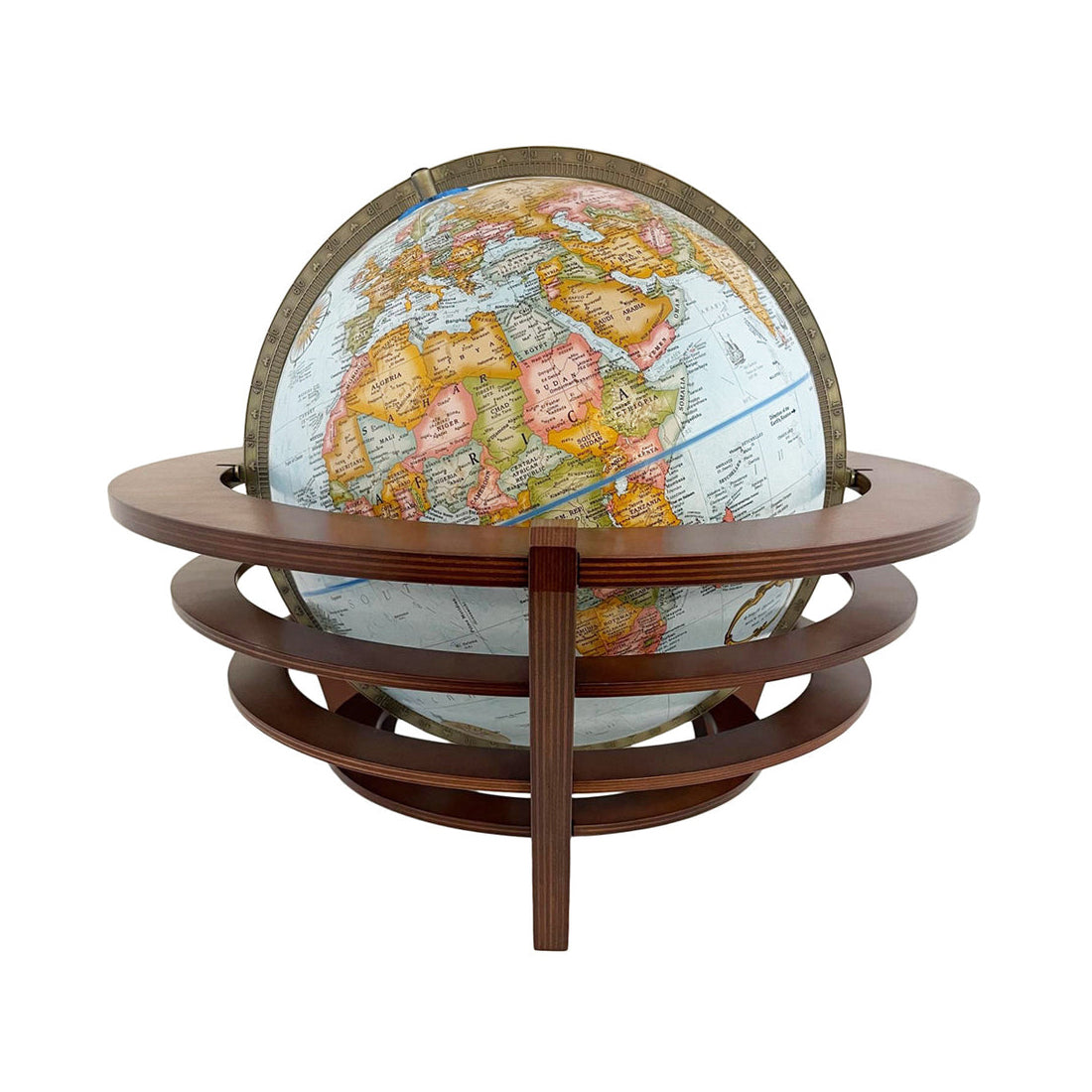This modern globe ball is held by a robust hardwood base and numbered die-cast meridian.  This design allows for easy 720 degree viewing of all the countries of the world (360 degrees east/west and 360 degrees north/south) including the countries in the southern hemisphere. Standing 15” tall the Frank Lloyd Wright Schwartz globes are both an attractive and functional accent piece for the home and office.