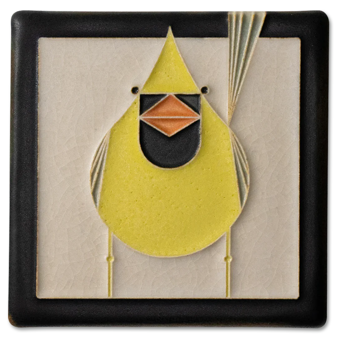Mid-century modern meets Motawi mastery in these tiles based on the work of celebrated wildlife artist Charley Harper (1922-2007), a self-described "minimal realist." From the Harper print "Red and Fed" (1970).