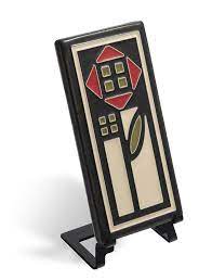 This tile was adapted from a design for a book cover Dard Hunter created during his time at Roycroft. William Joseph "Dard" Hunter (1883-1966) was primarily devoted to the study of papermaking. His designs for the Roycroft community in East Aurora, New York, helped define the Arts & Crafts movement in America. His art and design have been an ongoing inspiration to us.