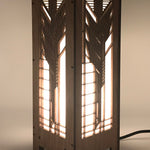Frank Lloyd Wright created some of his finest and most detailed art glass compositions for the doors, windows, and light fixtures of the Dana-Thomas House. Many of these designs are geometric abstractions of natural elements. Most notable are the butterfly art glass design arching around the entry door and the sumac design used in art glass windows throughout the house.
