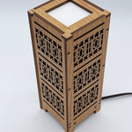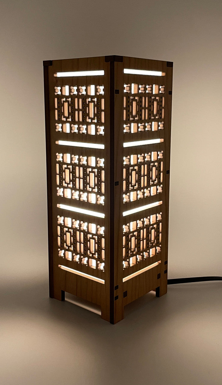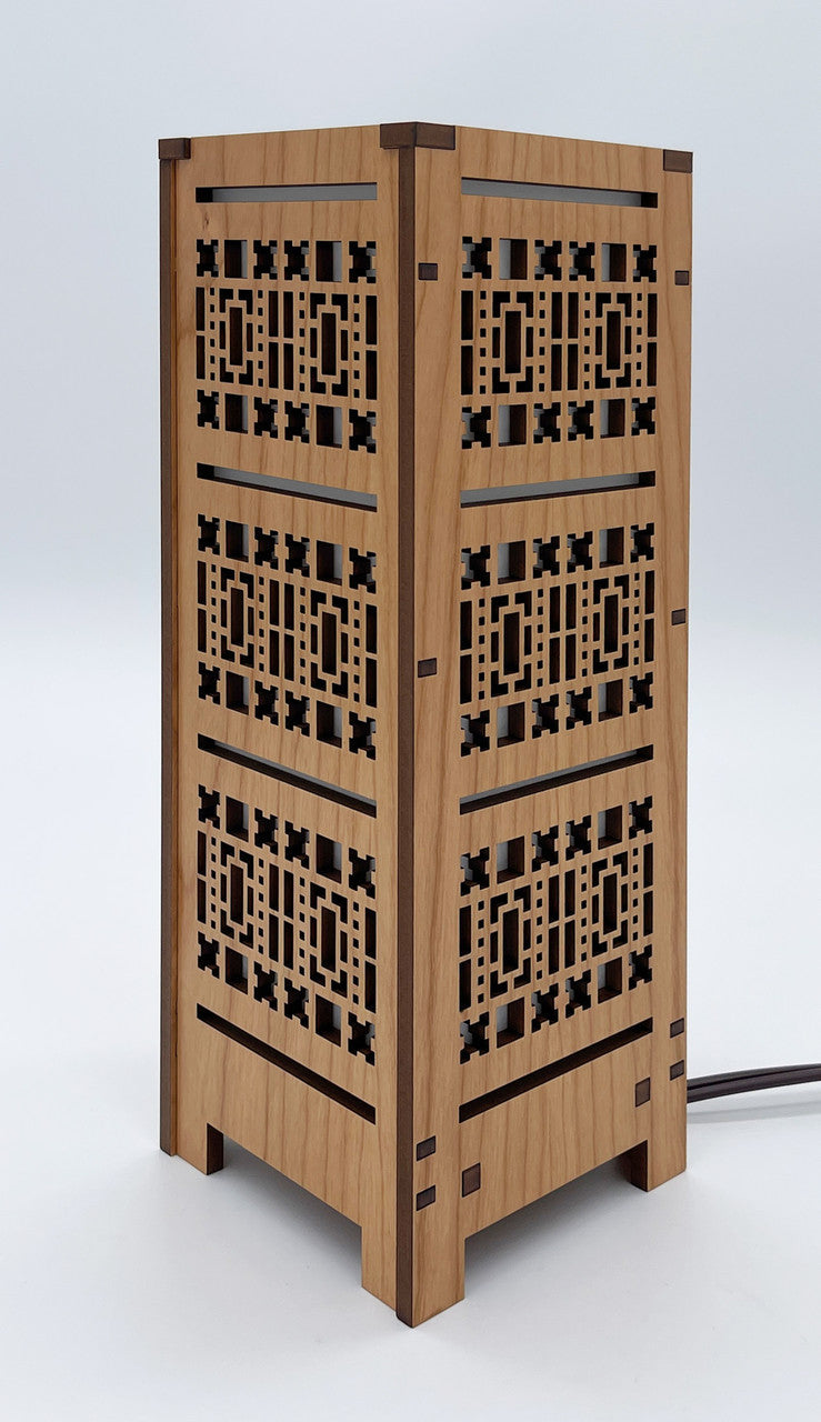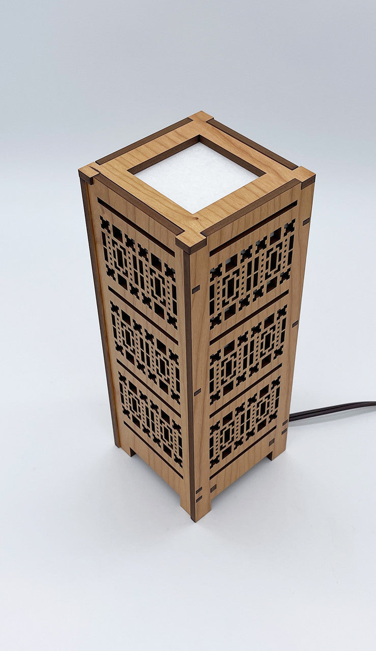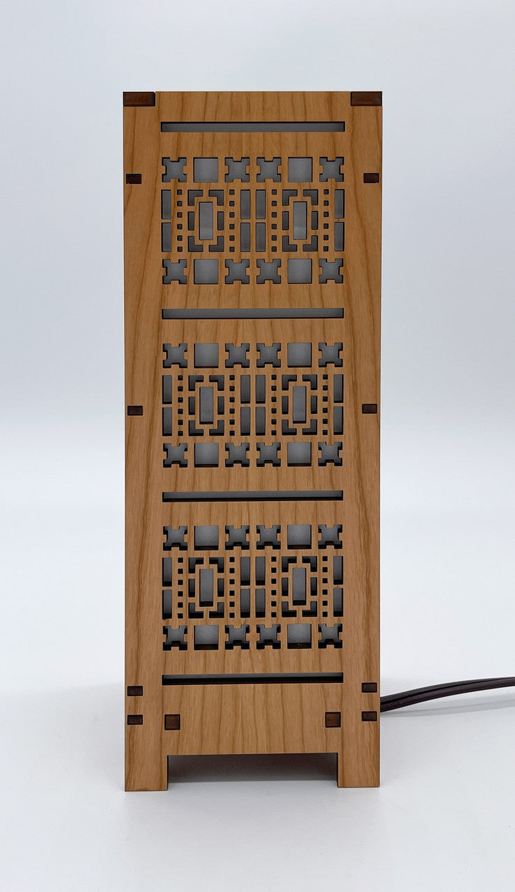 This lightbox is made with cherry veneered MDF and heat resistant shoji paper. Each lightbox includes an inline on/off switch on an 8' cord. The candelabra base also includes a 4 watt LED tubular bulb.