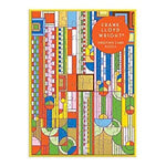 The Frank Lloyd Wright Saguaro Forms & Cactus Flowers Greeting Card Puzzle is a 60-piece postcard puzzle featuring Wright's colorful and iconic geometric design. The package comes with the puzzle fully assembled. Write the message on the back, break up the pieces, place in the envelope, and mail.