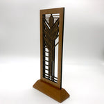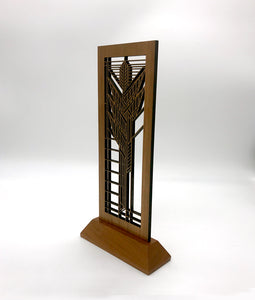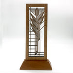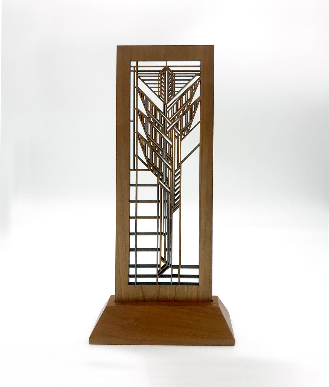 Frank Lloyd Wright created some of his finest and most detailed art glass compositions for the doors, windows, and light fixtures of the Dana-Thomas House. Many of these designs are geometric abstractions of natural elements. Most notable are the butterfly art glass design arching around the entry door and the sumac design used in art glass windows throughout the house.