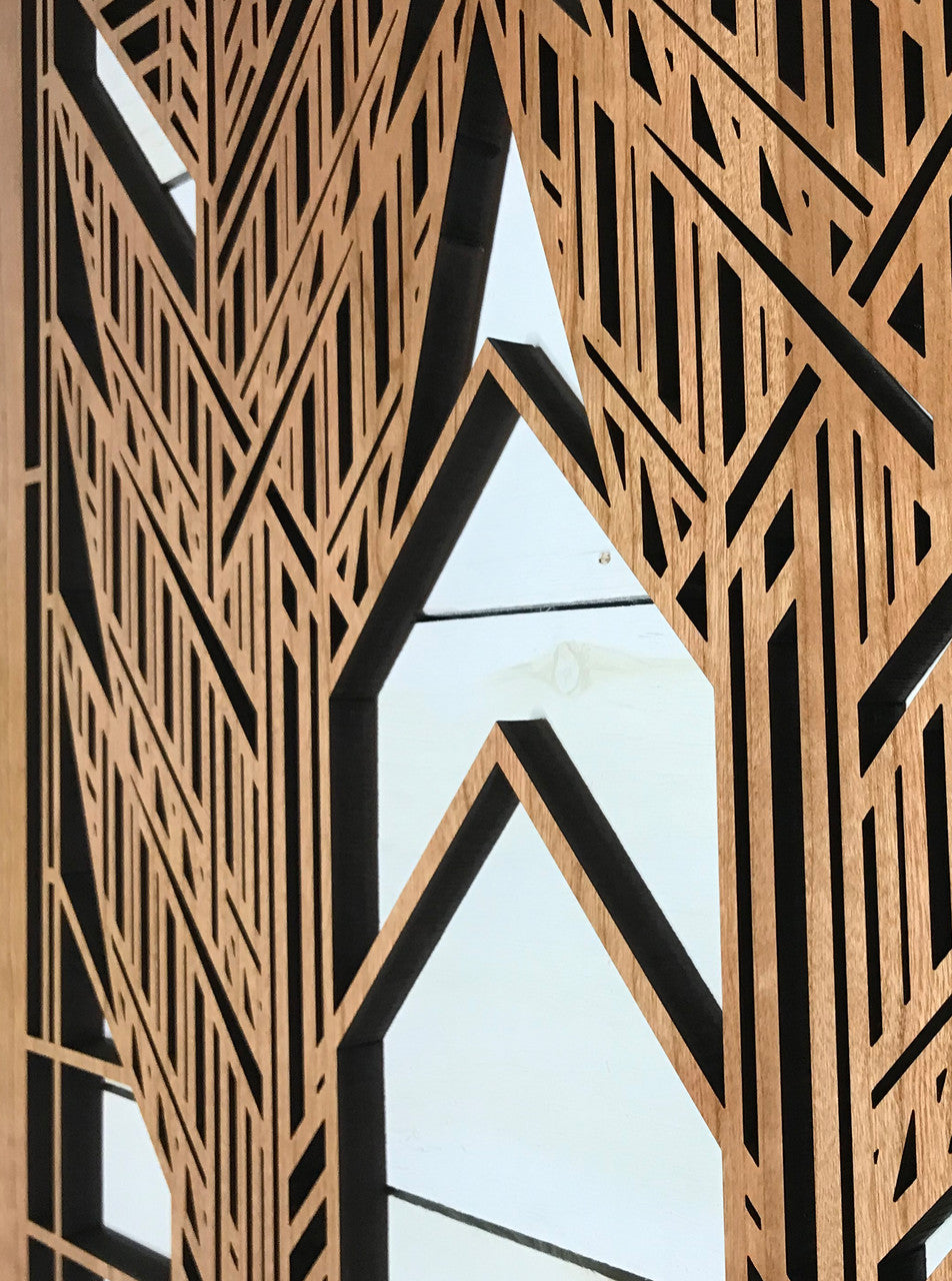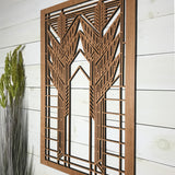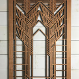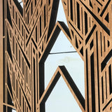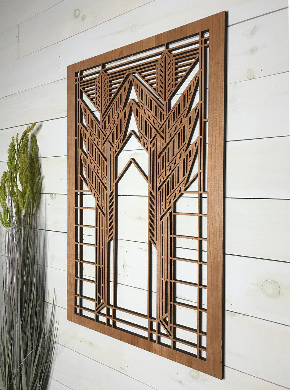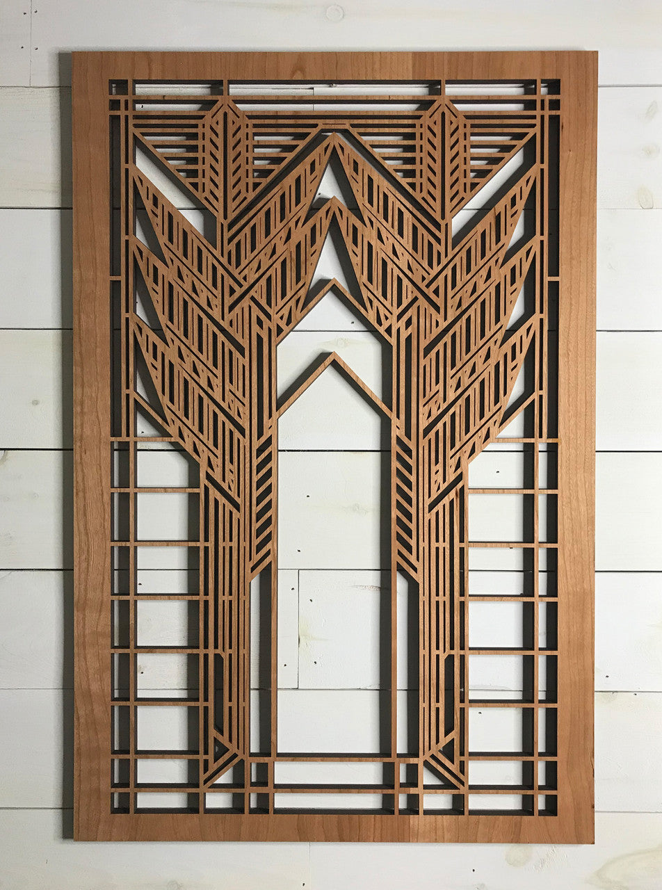 Our medallions and wall elements are made with cherry veneered MDF. This beautiful wall element measures 23-1/2" x 35-1/2" x 1/2". All AlaModerna products are made in the USA.