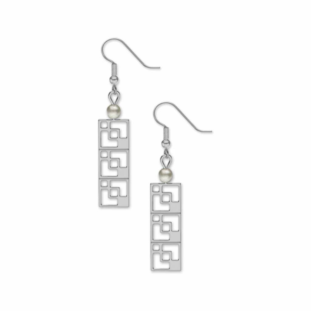 The use of decorative exterior brick was a characteristic of mid-century modern. The inspiration for these earrings were the ground floor windows of the Texas School Book Depository. Though removed during restoration, many photographs with these design elements can be seen in the permanent collection of The Sixth Floor Museum at Dealey Plaza.