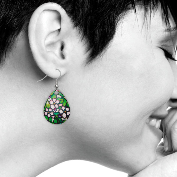 Earrings - Tiffany Stained Glass Cherry Blossom