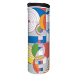 Colorful geometric patterned tumbler on a white background