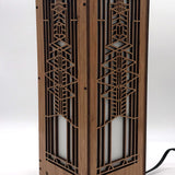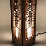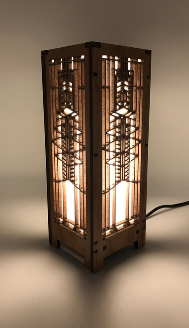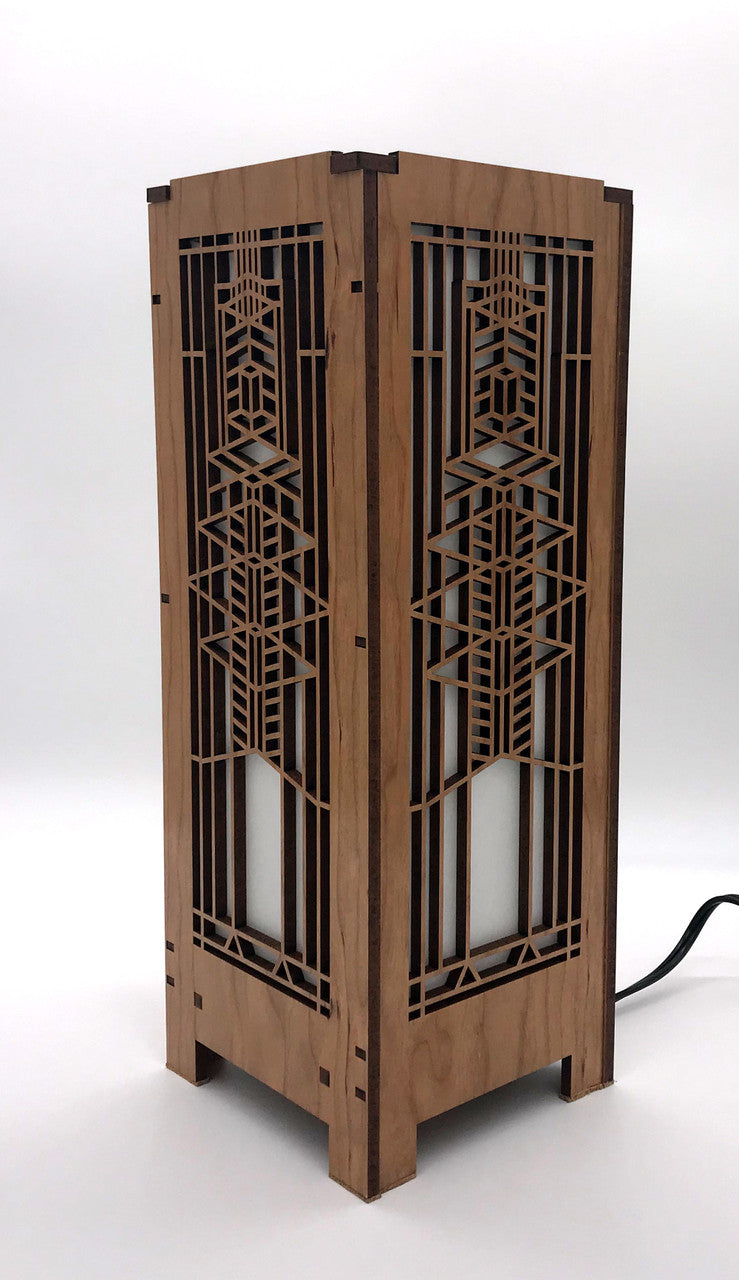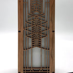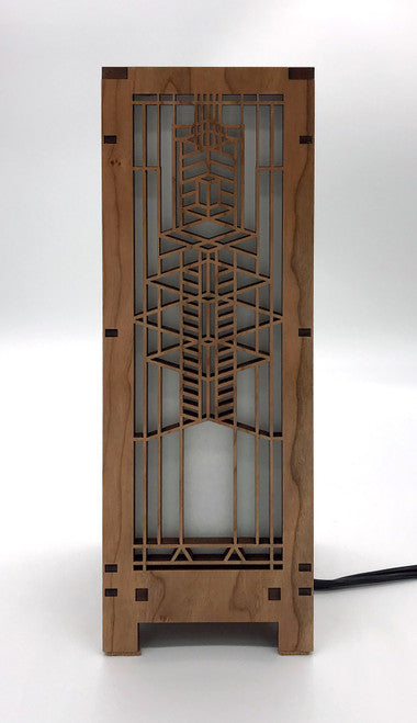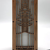 Lightboxes are made with cherry veneered MDF and heat resistant shoji paper. Each lightbox includes an inline on/off switch on an 8' cord. The candelabra base also includes a 4 watt LED tubular bulb.