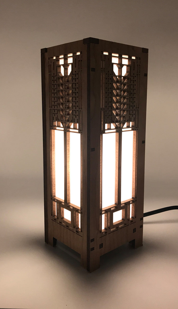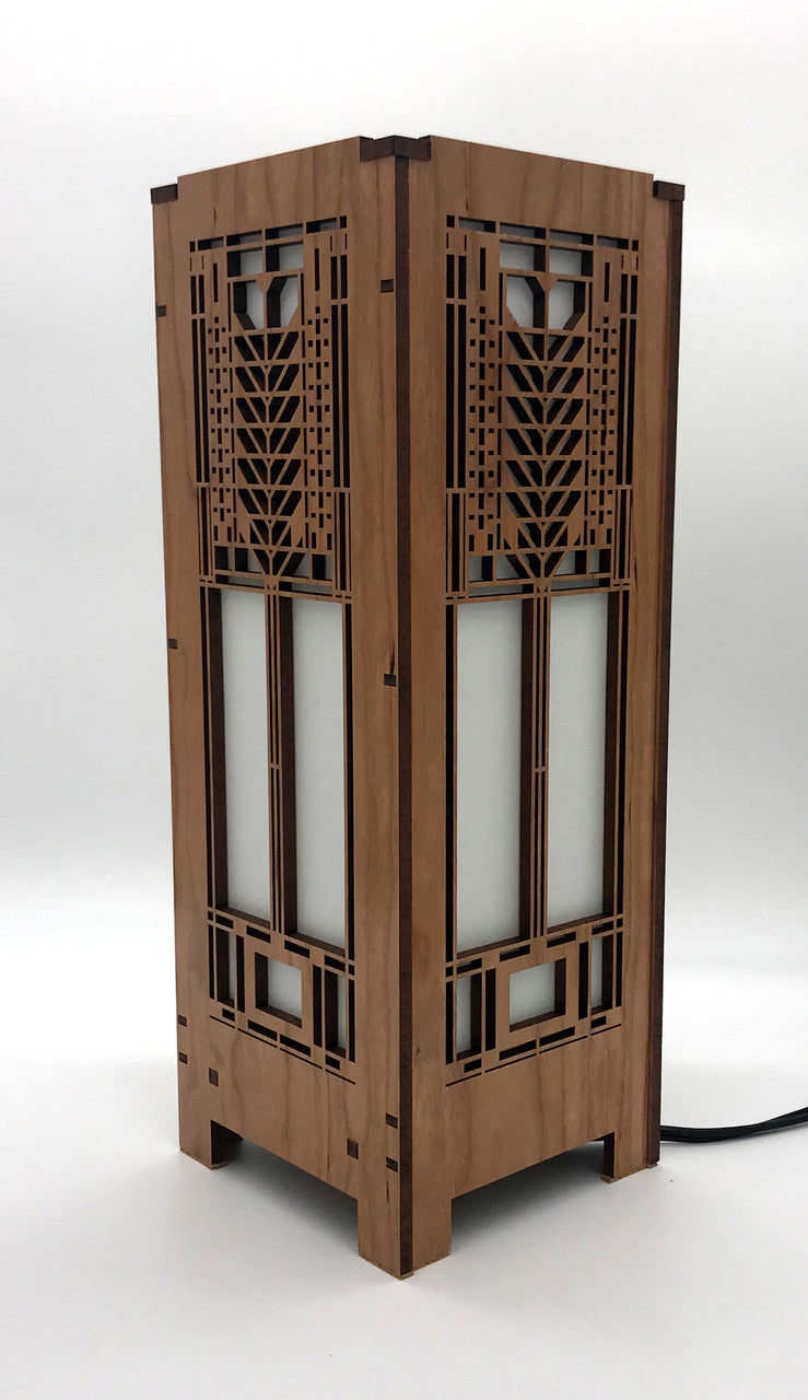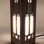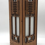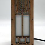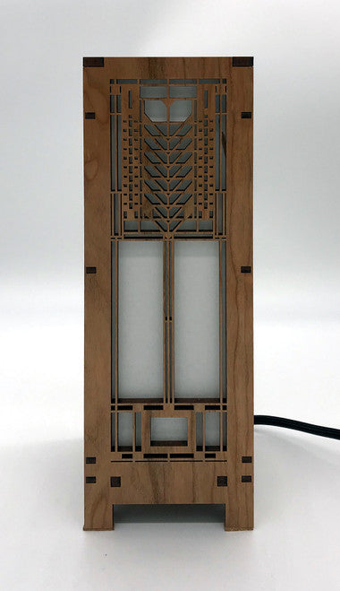 Lightbox is made with cherry veneered MDF and heat resistant shoji paper. Each lightbox includes an inline on/off switch on an 8' cord. The candelabra base also includes a 4 watt LED tubular bulb. This mini version of our lightbox measures 4-1/4" x 4-1/4" x 11-1/2" . Made in the USA.