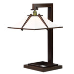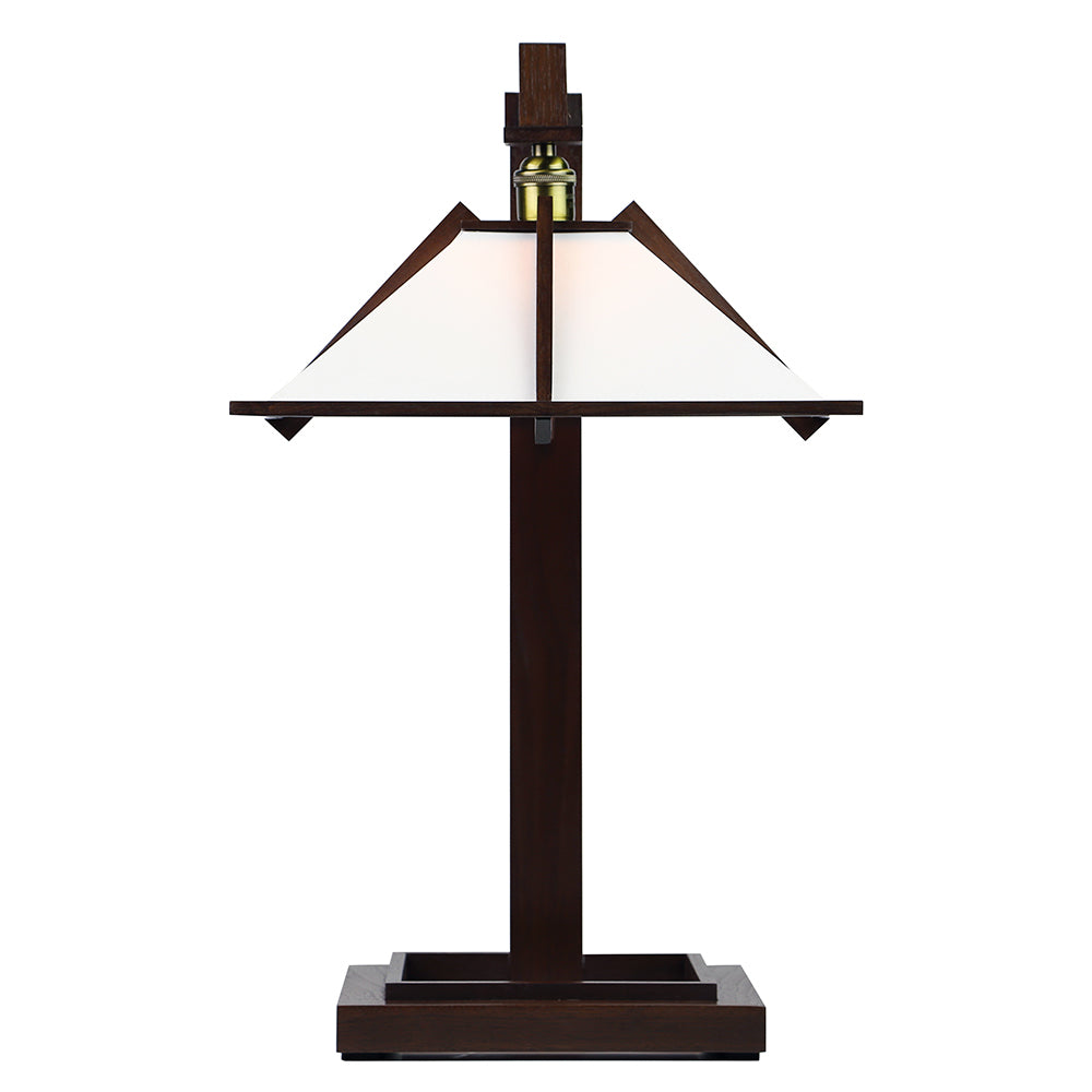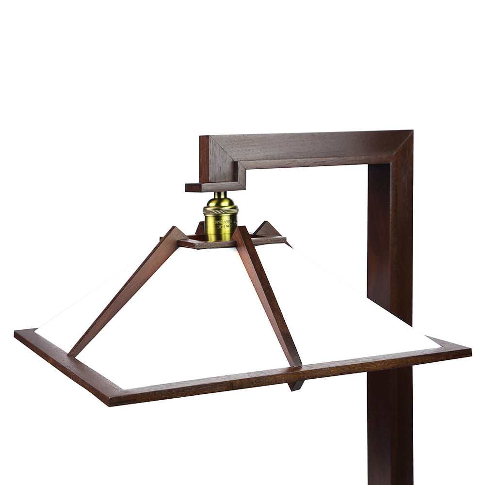 Originally designed in 1925 for Frank Lloyd Wright's own home at Taliesin, this lamp was so well liked that clients often requested it for their own residences. The shade overhangs the base like a sheltering roof. Beautifully crafted in America of walnut wood.