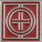 This signature design was created by Frank Lloyd Wright for the plaque at the entrance to his Oak Park Studio - a cross, inside a circle, inside a square. The design can also be seen in the planters outside the Studio.