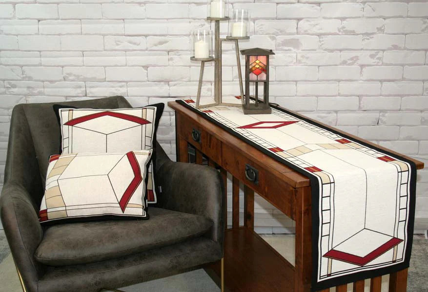 Design is inspired by the striking diamond window found above the porte-cochere on the Isabelle R. Martin house, Buffalo, NY, 1926. It is the largest in a complex of three buildings and landscaped grounds, located on the Graycliff estate. Architect of record, Frank Lloyd Wright.