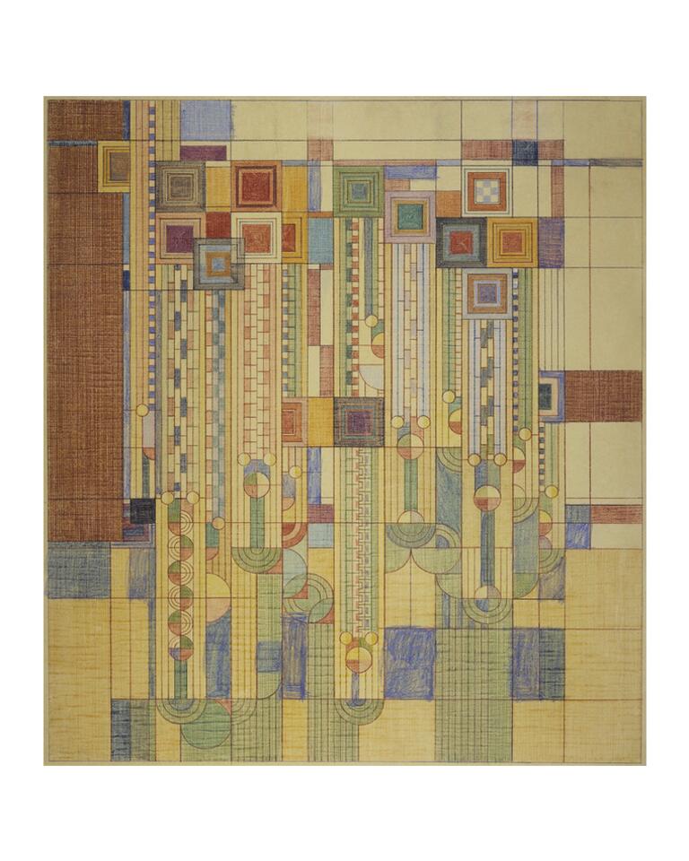 In 1927, Frank Lloyd Wright designed a series of twelve seasonally themed monthly covers for Liberty magazine. The magazine deemed the covers too avant-garde and returned them to Wright. Each design of the Liberty magazine covers is an example of Wright’s practice of using the tools of his trade: a t-square, triangle, and compass to create lively geometric designs.