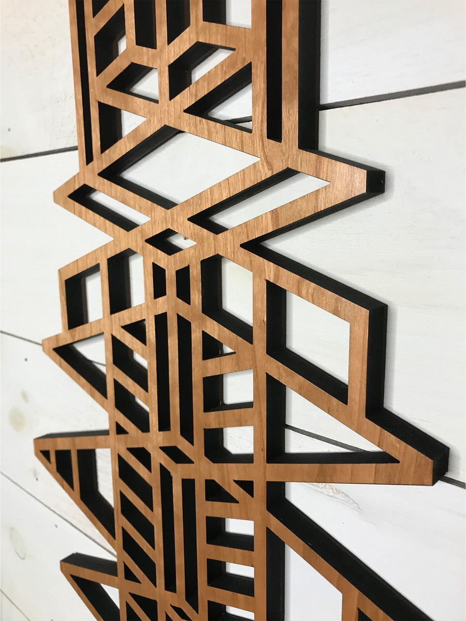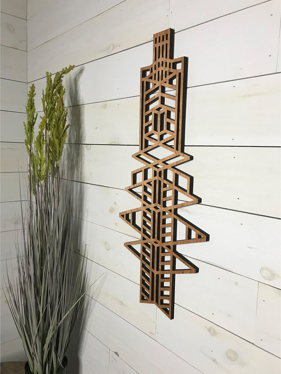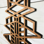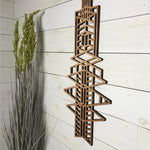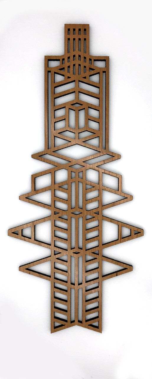 Our medallions and wall elements are made with cherry veneered MDF. This beautiful medallion measures 13" wide x 30" long x 1/2" thick. Includes one sawtooth hanger and hardware. All AlaModerna products are made in the USA.