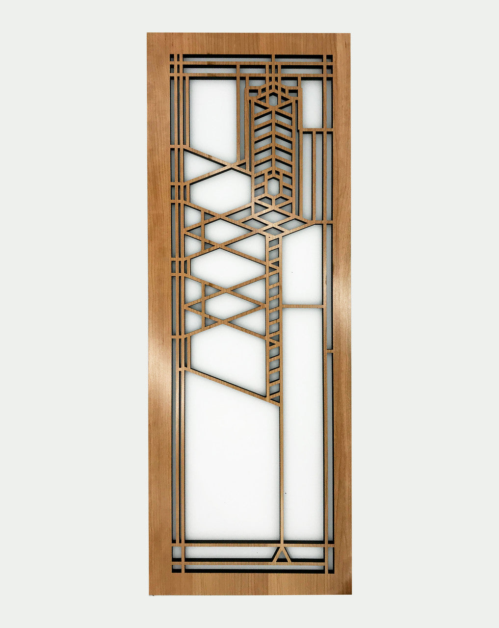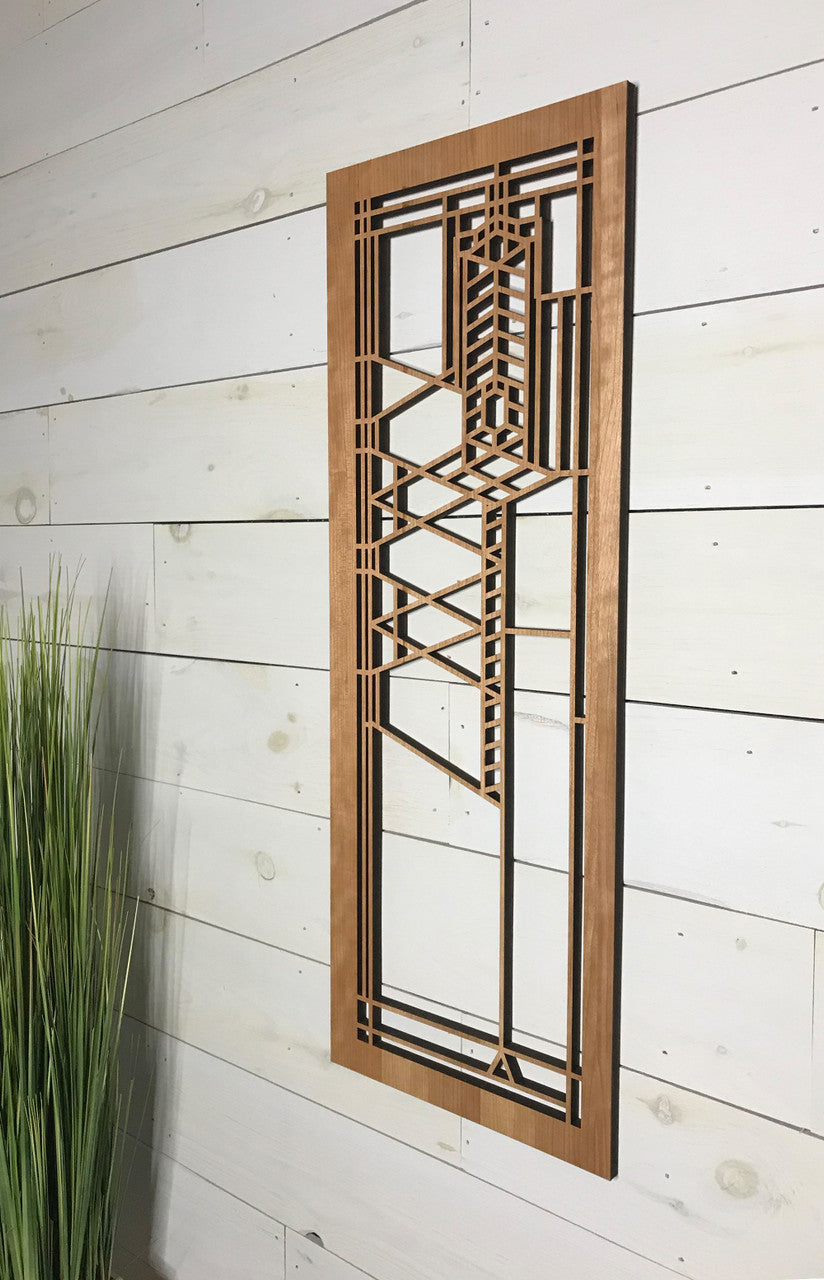 Our medallions and wall elements are made with cherry veneered MDF. This beautiful wall element measures 11-1/2" x 31-1/2" x 1/2". Includes one sawtooth hanger and hardware. All AlaModerna products are made in the USA.