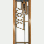Frank Lloyd Wright designed his Prairie style masterpiece, the Frederick C. Robie House in 1908 from his Oak Park Studio. This distinctive structure, which was commissioned by a local engineer, is renowned as a forerunner of modernism in architecture. The American prairie landscape is mirrored in this architectural style by low horizontal design, open interior spaces, and deep cantilevered eaves, made possible by long spans of structural steel framing. The long façade is punctuated by over 170 art glass windows which enhance its openness. The home includes twenty-nine unique glass designs. Their color and delicate geometric diamond and chevron shapes are abstractions of the surrounding Midwest foliage and grain shafts.