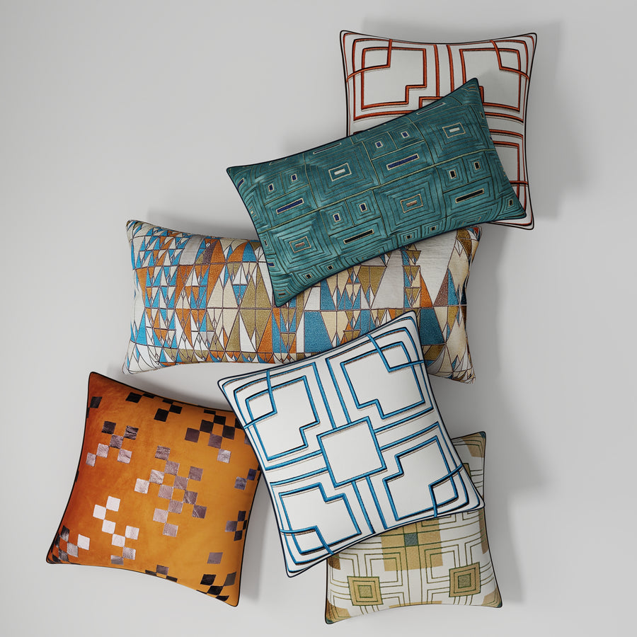 Storer House 3-D Embroidered Teal Applique - 20" x 20" Pillow.