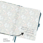 Each vegan leather journal is printed with a fine art masterpiece in vivid colors, with the artist's signature on the spine. Complete with an elastic band to keep it securely closed in your bag, two silky ribbon bookmarks to keep your place, a loop to hold your pen, and an interior pocket for ticket stubs and photographs, this journal is ready to travel wherever you might take it. Each page is micro-perforated for easy tear-out, and thick enough to prevent ink from bleeding through to the other side. With 160 dot grid pages, this luxurious journal makes a perfect gift for students, writers, travelers, and art-lovers of any kind.